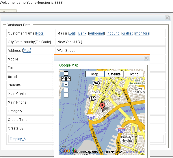 点击查看一个有地址的客户信息,点”Map”,就可以调用goole maps来显示他的地址了