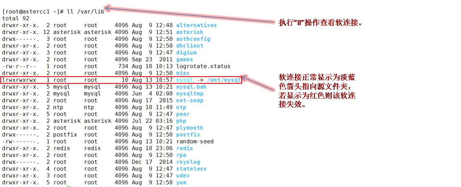 复制完成后如下执行命令,将新数据库目录软链接至/var/lib操作如下:
