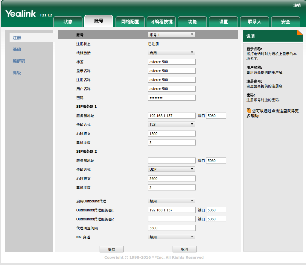 yealink话机 TLS传输 注册 asterCC5、yealink话机改传输方式为TLS注册astercc系统。